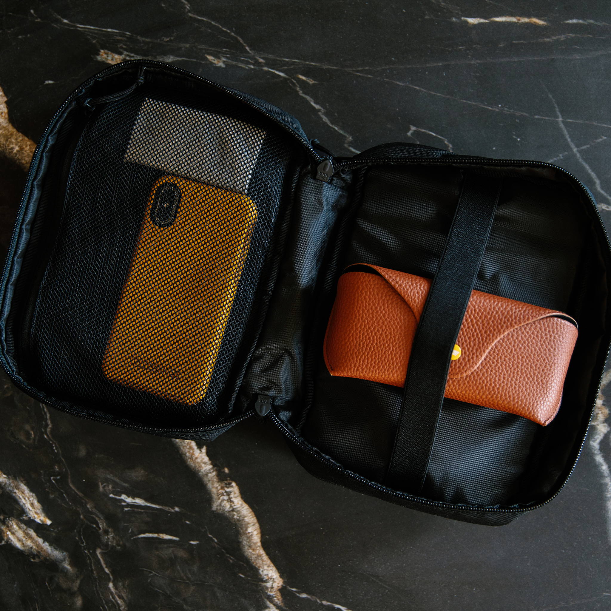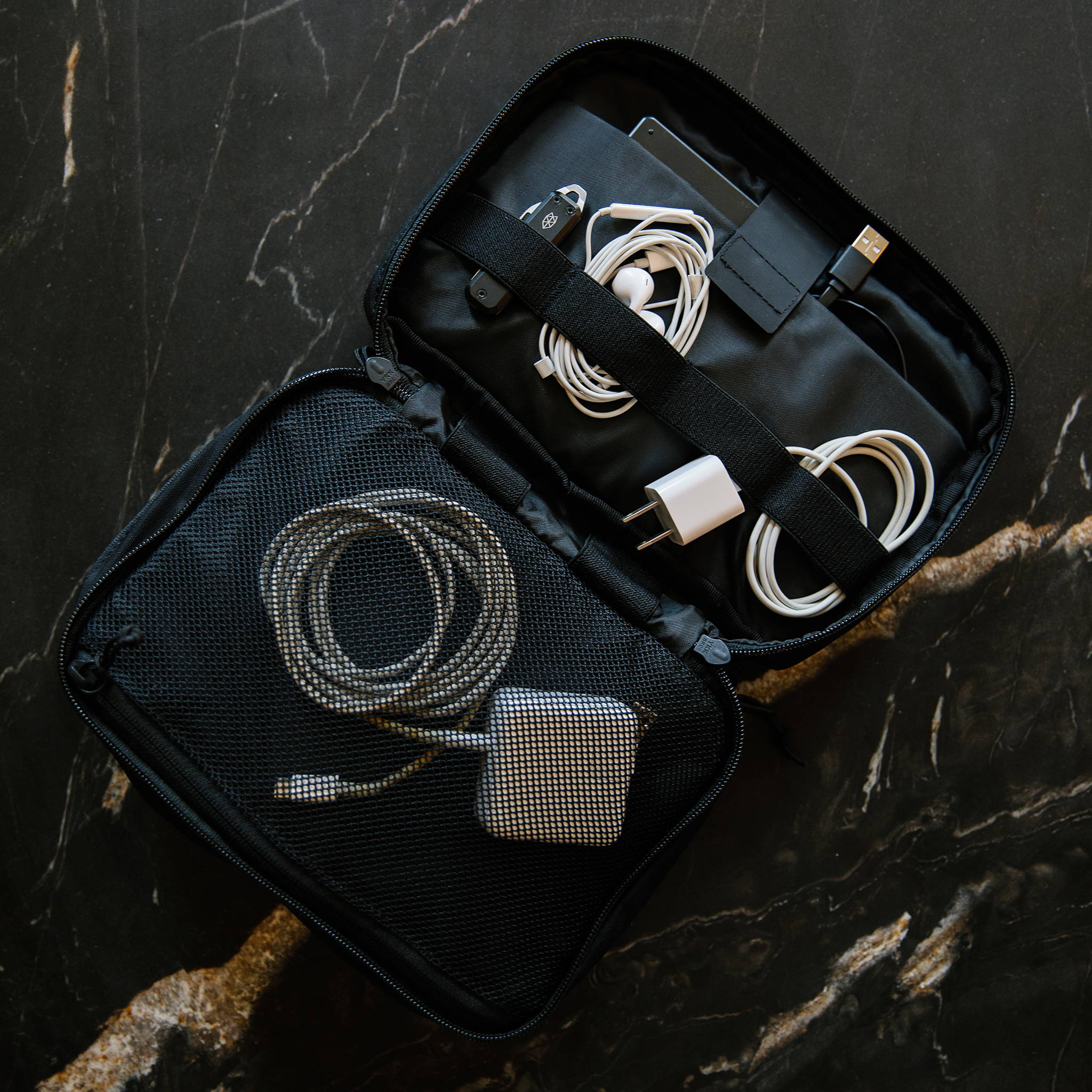 Boasting a dual compartment build and front zippered pocket for effortless access, this is the sort of carry we appreciate here at Coolector HQ. The front main compartment has an internal mesh pocket on one side and an elastic organisation band on the other. The back compartment has an internal mesh pocket, an internal padded tablet sleeve with elastic daisy chain webbing on the exterior side. Last but not least, a top handle allows for a rapid and easy carry.
