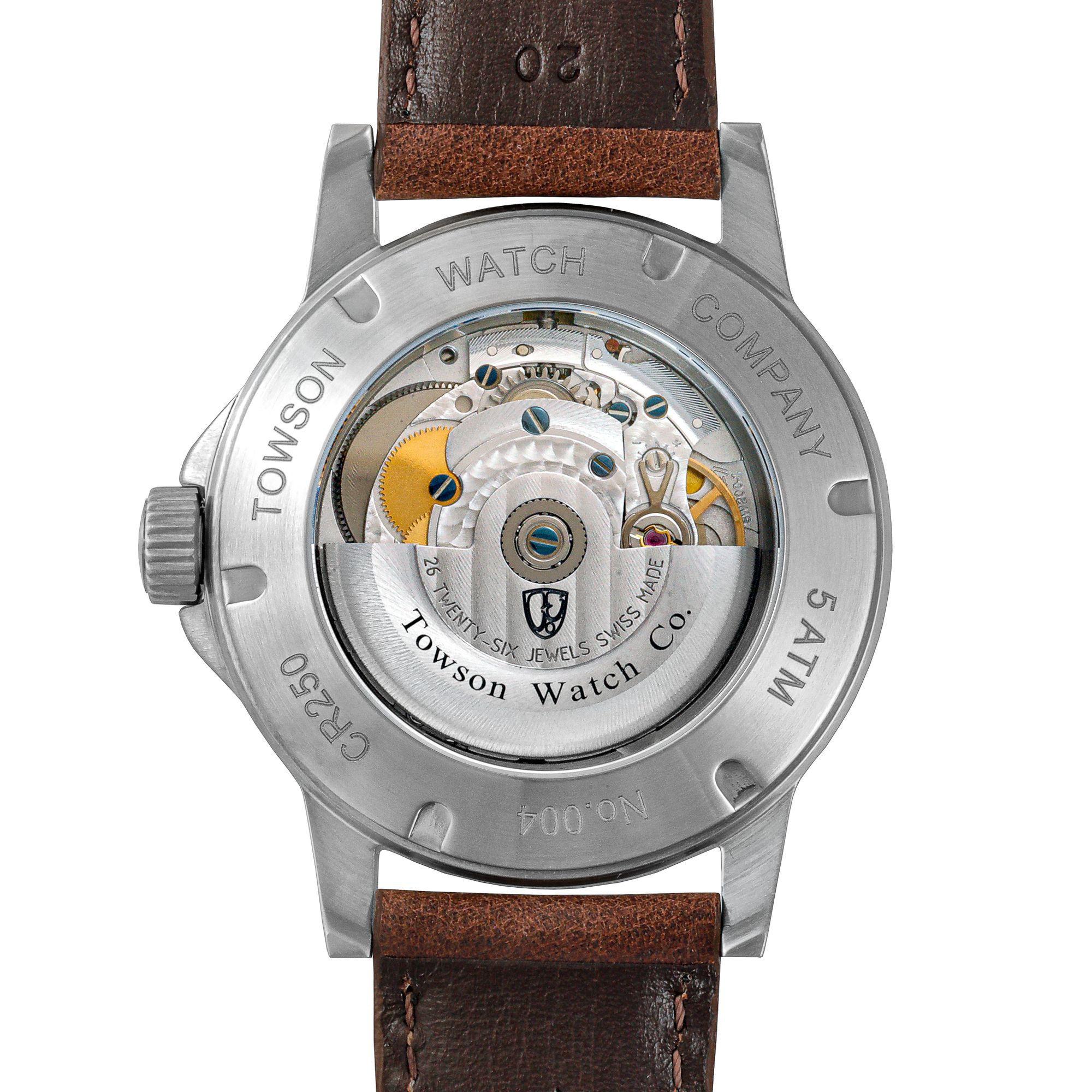 Encased in German stainless steel and boasting hand-finishes with truly intricate detailing, it’s hard not to fall for the Recruit Vs Cadet Watches from Towson and we’ll definitely be looking to get our hands on one here at Coolector HQ. The decorated Swiss-Made movement is revealed by the exhibition display on the back which adds a real touch of class to the proceedings. Each one comes equipped with a hand-stitched leather strap and signed Towson Watch Company buckle. Reference number CR250 is engraved on the back with a unique serial number. After a luxurious, top-performing field watch? Towson have got just the candidate.