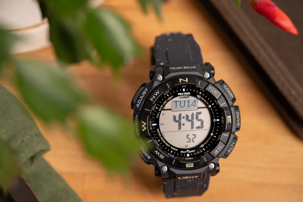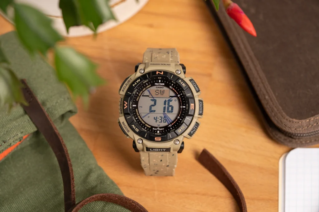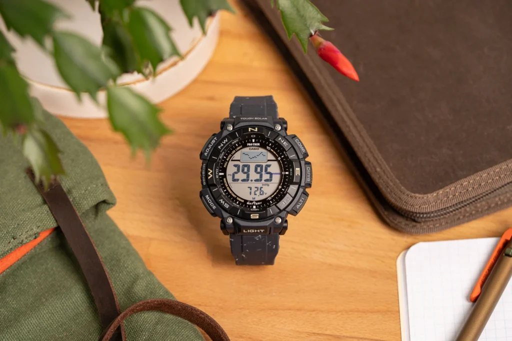 For decades, Casio’s ProTrek line has been synonymous with rugged outdoor capability, consistently pushing the boundaries of what a tool watch can do since its inception in 1995. With roots going back to the first watch with a GPS sensor and evolving through high-tech quad-sensors, ProTrek has spent three decades pursuing the ultimate in outdoor gear. The Casio ProTrek PRG-340 Recycle Band Watch represents the next evolutionary step in this storied lineage, showcasing ProTrek’s commitment not only to performance but also to reducing environmental impact through the use of sustainable materials, while remaining a formidable companion for life out of doors.