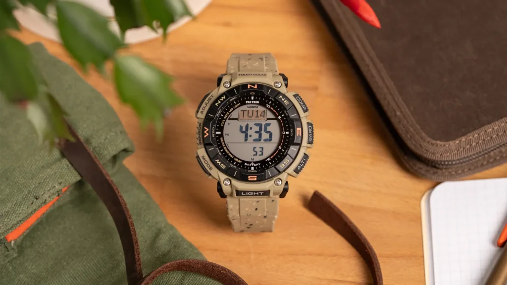Rooted in Casio’s broader legacy of innovation since 1946 (from calculators to synthesisers and cameras, alongside famous watch lines like G-Shock and Edifice), the ProTrek line embodies a tech-forward approach. The ProTrek PRG-340 Recycle Band Watch is a compelling evolution, blending ProTrek’s renowned outdoor capability with a clear commitment to sustainability through recycled materials in its construction. Available at a price point of $280, it stands as a reliable, feature-packed tool watch for the modern adventurer who values both robust performance and a reduced environmental impact, proving that going green doesn’t mean sacrificing capability.