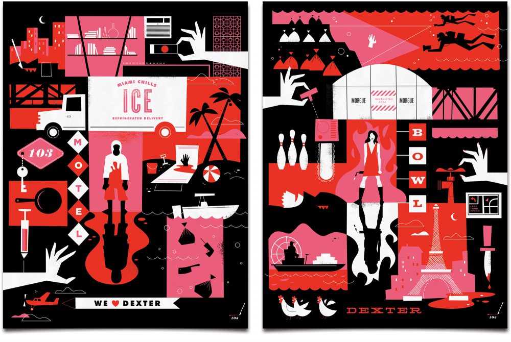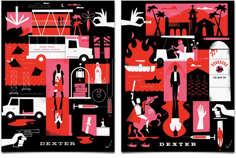 Ty Mattson is a graphic designer and illustrator who has a particular penchant for popular culture, and we’ve featured his equally as excellent Breaking Bad prints in the past, so he’s certainly got form when it comes to catching our eye here at The Coolector. These superb looking Dexter Prints are suitably striking and, as you would expect, feature the colour red extensively throughout the design and this is something synonymous with the show.