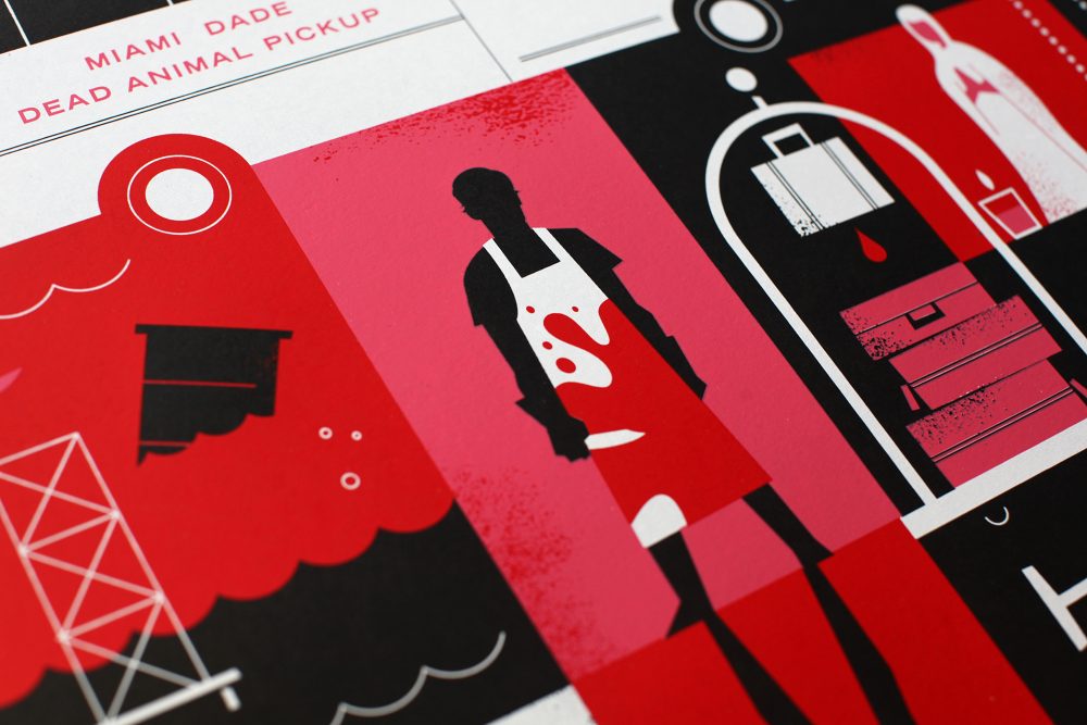 Mattson certainly has his own distinctive style when it comes to his prints and its ones that we’re mighty impressed with here at Coolector HQ. There is a real attention to detail with these Dexter Prints in particular with great little nods to happenings in the show throughout their construction. If you miss the Show Time series and want something to remember it by, these cracking prints from Ty Mattson would definitely be our pick.