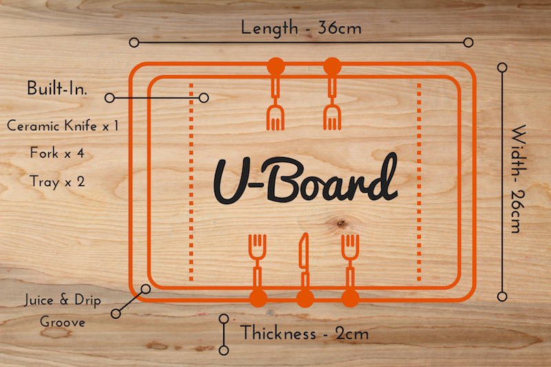 Each set of U-Board Cutting Boards include a built-in set of U-forks, U-trays and a stylish ceramic U-knife which all combine to make sure this is one of the most versatile accessories you can have in tow for any BBQ or camping trip and you don’t have to worry about forgetting to bring any kitchen gadgets to your outdoor events because it is all neatly tucked away in your U-Board.