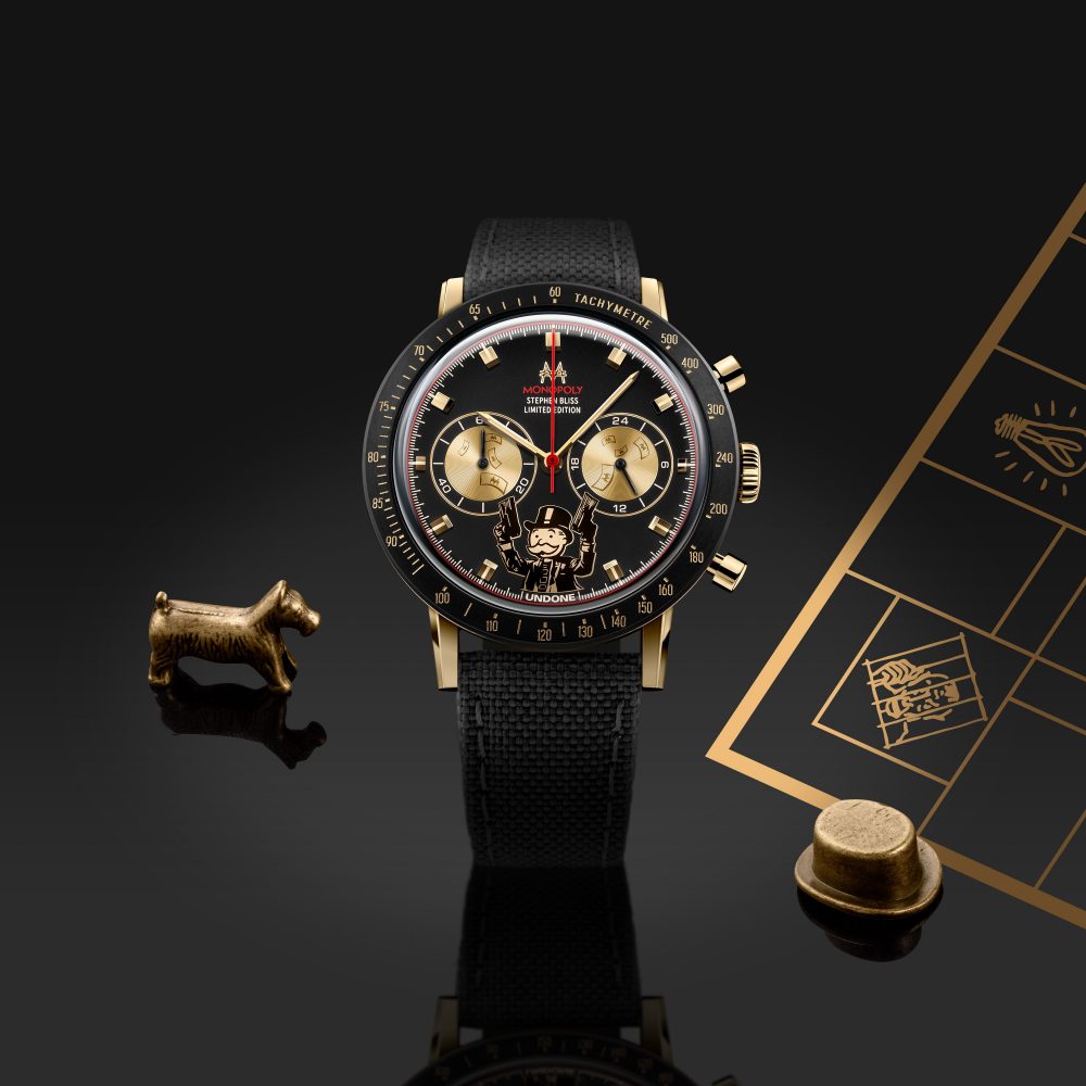 In this ground-breaking collaboration, Stephen Bliss, the artist who established the highly recognisable, illustrative style we all know and love in GTA, brings his iconic pop-culture style artwork and a dark sense of humour to UNDONE’s new set of two limited edition Monopoly Collector’s timepieces which will be limited to just 500 pieces each so you’ll need to make sure you move quickly if you don’t want to miss out on this one.