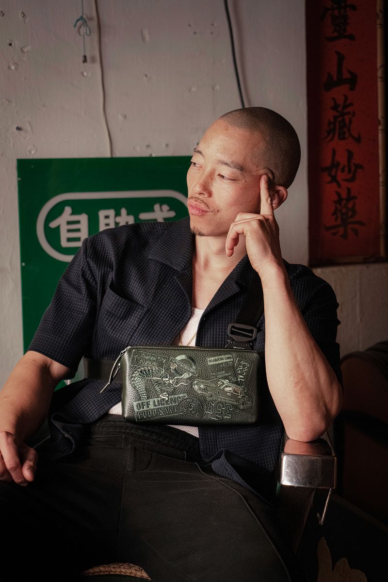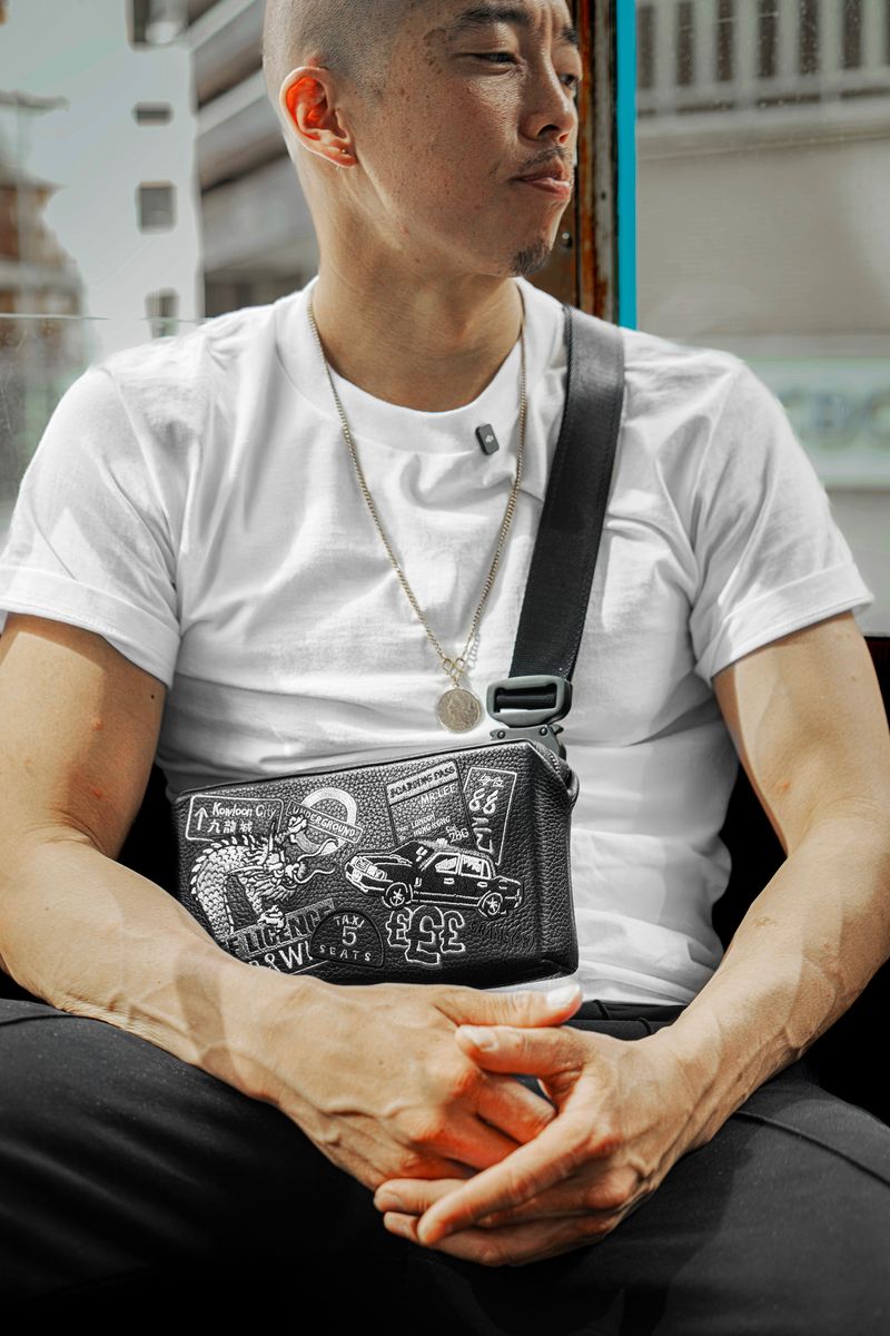 For those unfamiliar, MR LEE is far more than just an artist; for him, art is life. His captivating body of work is a vibrant tapestry woven from his rich heritage as part of an immigrant family and his own profound lived experiences. Drawing inspiration from the mundane – every train ride, every walk, every training session – MR LEE funnels intense focus into his creative process, culminating in a unique and highly stylised artistic vision. His ever-growing repertoire and relentless creative drive make him a multi-faceted artist constantly pushing boundaries, and now, his Promethean vision finds a new canvas in GRAMS28’s exquisite leather.