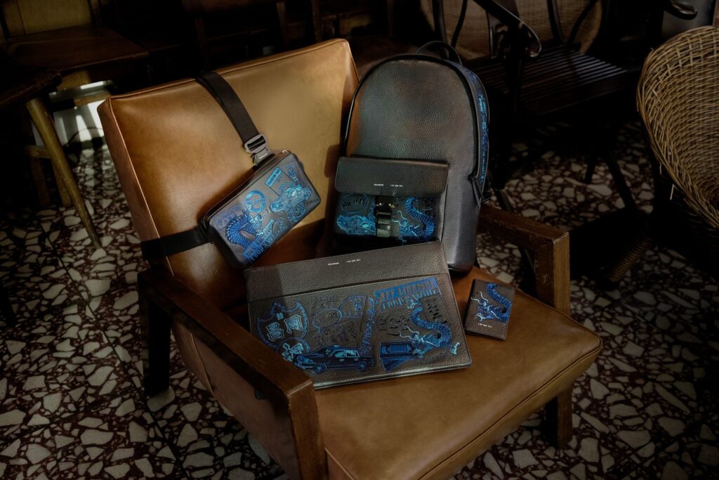 The collection itself features four meticulously crafted pieces, each elevated with intricate tone-on-tone embroidery that brings MR LEE’s evocative artwork to life. Discerning gentlemen will find the versatile 151 Stealth Backpack, perfect for the urban adventurer; the sleek 157 Essential Sling, ideal for quick-access essentials; the compact yet functional 104 Fold-Out Wallet, a daily staple reimagined; and the refined 120 Leather Folio, an elegant companion for your tech and documents. Each of these covetable pieces is available in three distinct colourways – classic Black, sophisticated Dark Green, and versatile Navy Blue – ensuring there’s a shade to complement every style. Critically, all pieces are produced in strictly limited quantities, underscoring the exclusive nature of this artistic fusion.