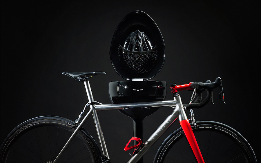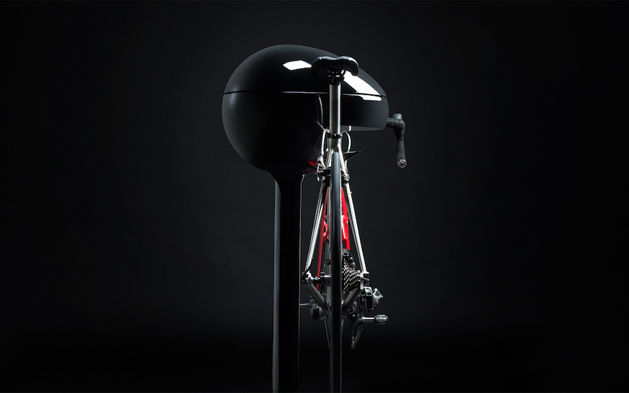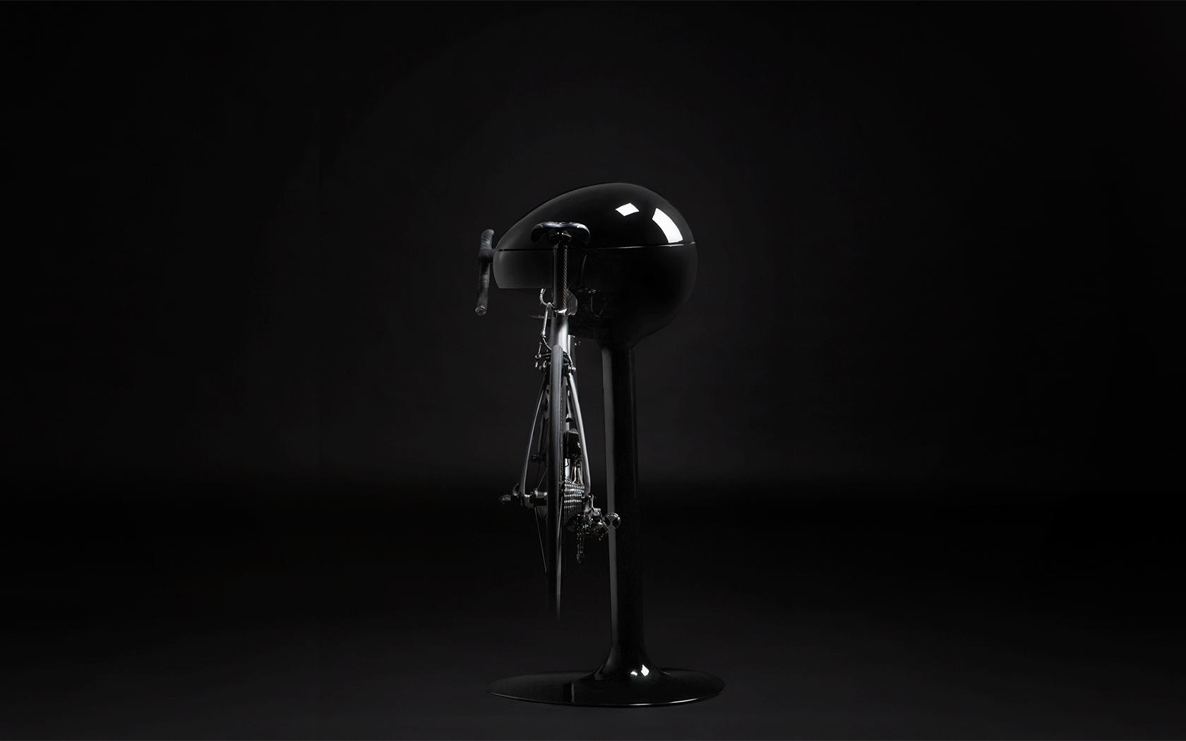 The Vadolibero Neos Bike Butler isn’t just a means of storing your bike, it also has an additional storage space for all your essential gear and EDC before you set off on a ride and for those that like to be organised before a bike ride, this is certainly something that will be for you. This cleverly designed piece of cycling apparatus whose egg-shaped mysterious case mirrors the style of the base with its stealthy and stylish glossy black finish and delivers a minimalist profile with its sleek lines.