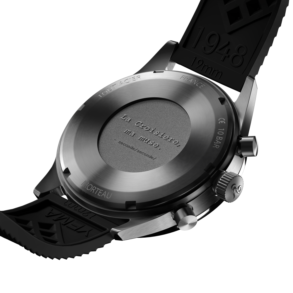 Turn the watch over, and the story continues, told loud and clear. The back of the timepiece is engraved with the phrase “La Croisière, ma muse” (The cruise, my muse) – a poetic mic drop from seconde / seconde /. It’s a cheeky “vandal’s manifesto” laid bare, visible for all to appreciate, or perhaps ponder, as you go about your day.