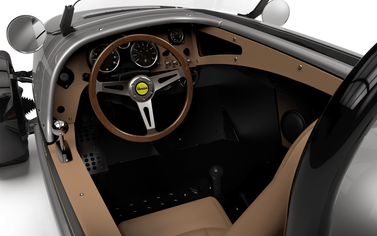 Everywhere you look with the Vanderhall Venice Speedster you’ll discover great little design features and a fine attention to detail which all combine to make this an extraordinary machine that will be a real pleasure to drive. Starting with the silver vintage metallic body colour which gives it such a visual impact and is joined by the Saxony Brown upholstery which is just about as dapper as it gets, the Venice Speedster will tough to top in the aesthetics department.