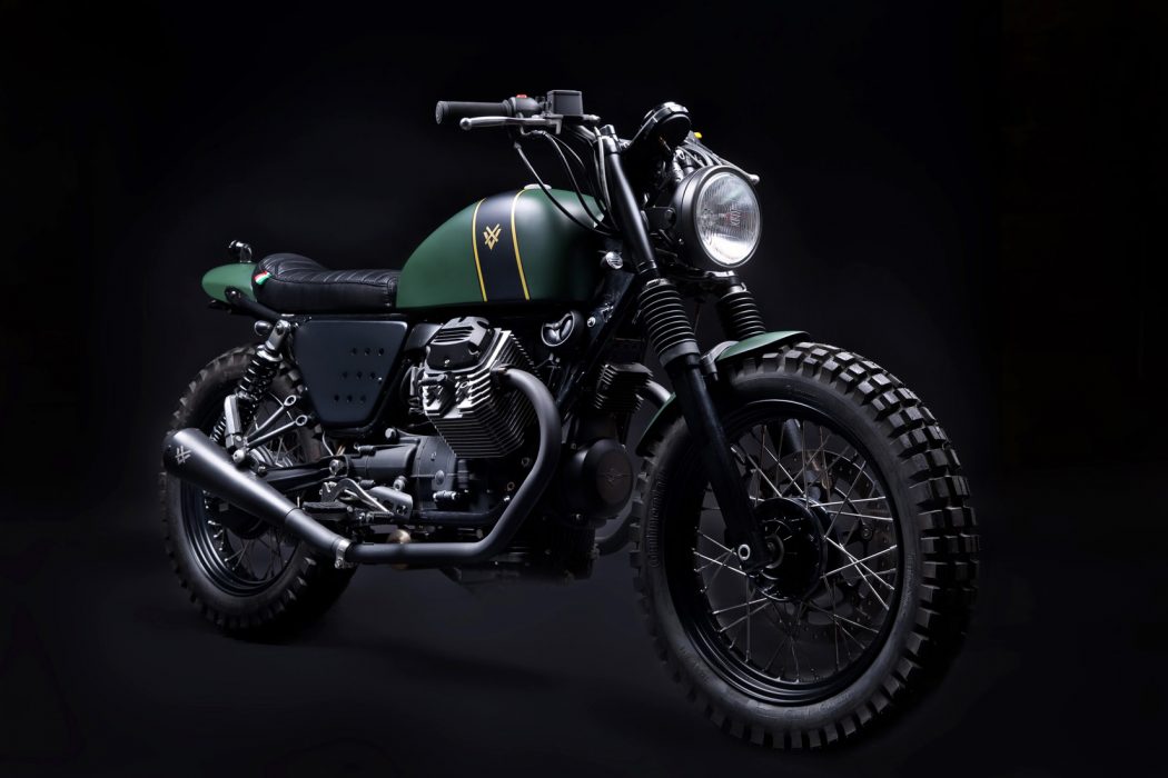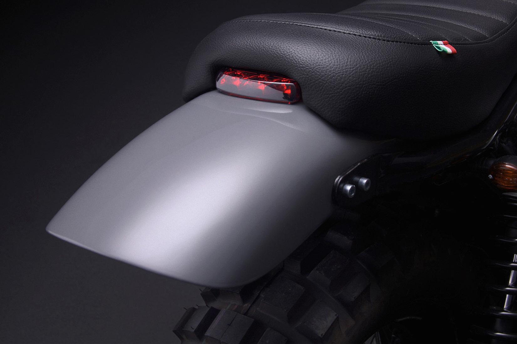 Impressive from top to bottom, the Tractor Motorbikes are the first Moto Guzzi Scrambler Venier made that boasts the new generation of hand crafted aluminium bodywork. The tank has been elongated and reshaped, and the tail section completely redone with a new hand made leather seat and a recessed LED tail light and new rear fender. These breathtaking bikes also have a 4”headlight with custom brackets, black aluminium handlebar, GPS custom speedo with Venier logo, new grips, custom mufflers have been made for the bike by Mass Moto in Sicily. Last but not least, you have the hand crafted aluminium sides and front fender which finish the bodywork off in style.