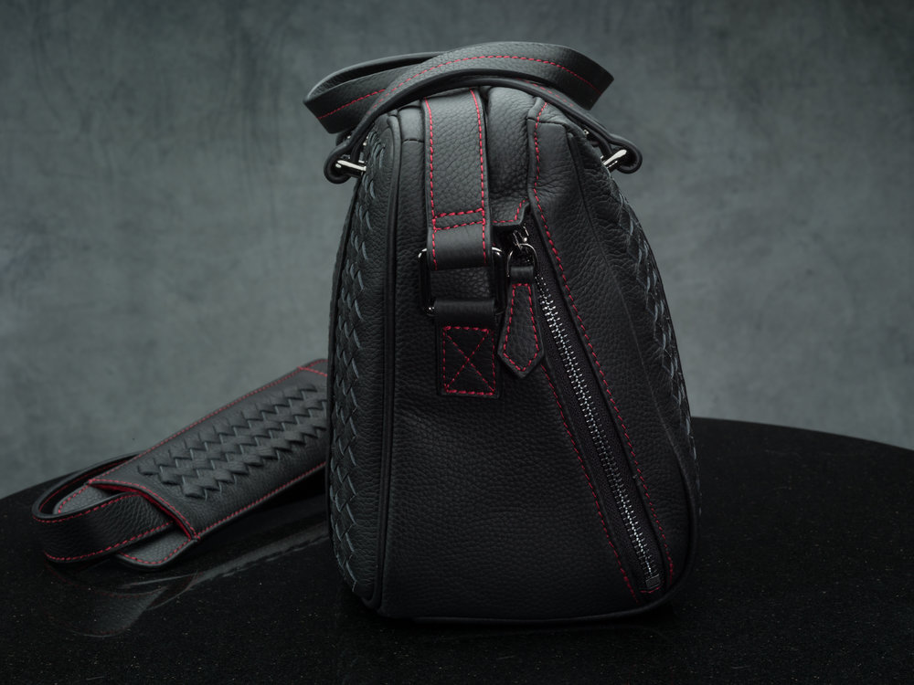 The Vi Vante “Calibre” Hand Woven Leather Camera Bag ($749.99) is overflowing with design detail and the quality of the materials used throughout its construction really do help set it apart from other accessories on the market. Each one is crafted from premium Top Grain Italian leather, and only the best portion of the hide is used to ensure a tangible sense of quality to the touch. The Leather is textured which makes it resistant to scratching and gives it a visual impact quite unlike any other.