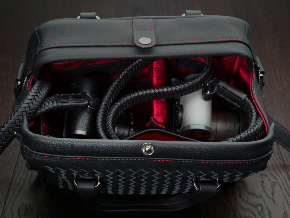 The profile of these hand woven camera bags make it look incredibly compact but, in actuality, it’s cargo capacity is perfectly suited for rangefinder style camera lovers and the amount of space you’ll find within is surprising. For example, you can fit two Leica M Cameras with lenses mounted or one M with 2 additional lenses which are big cameras so this speaks volumes about the available space.