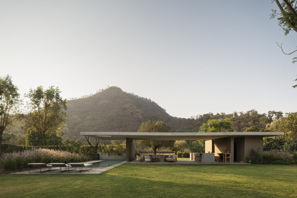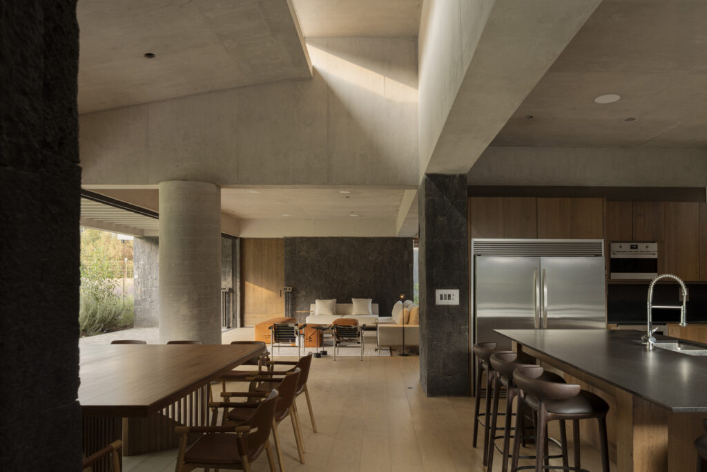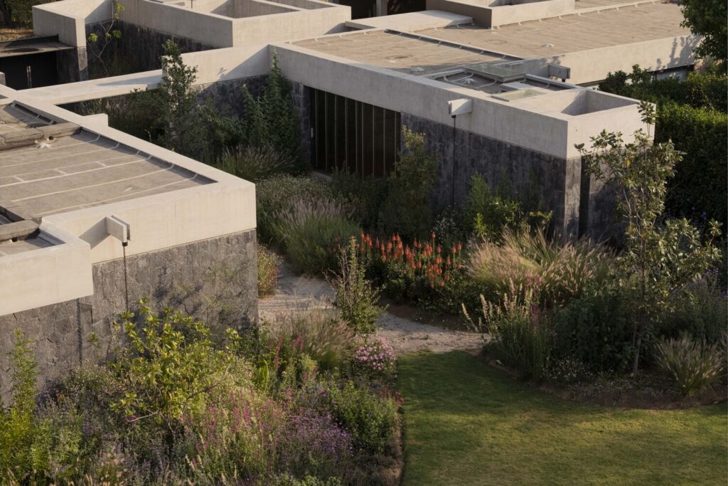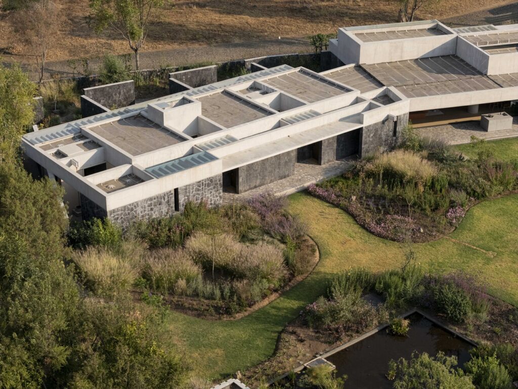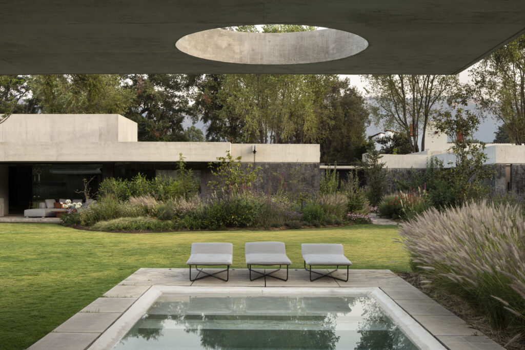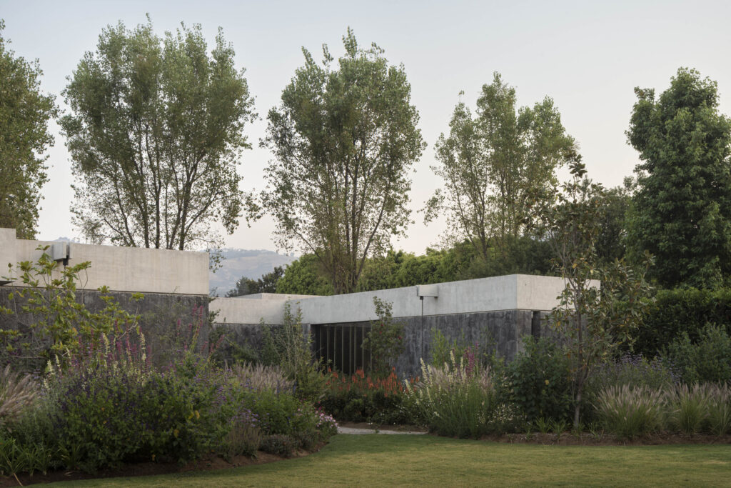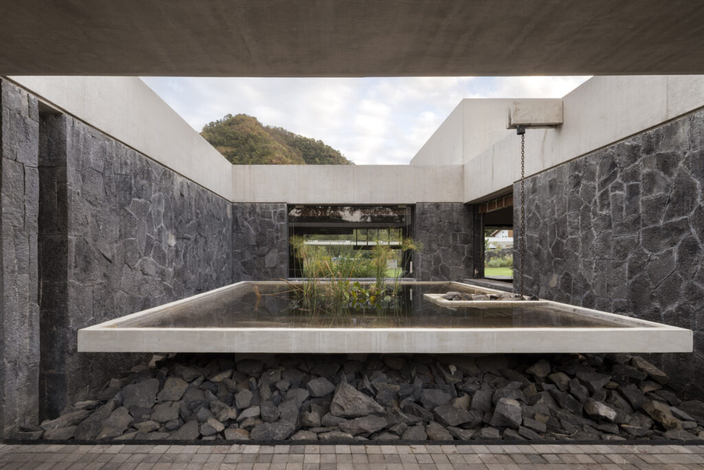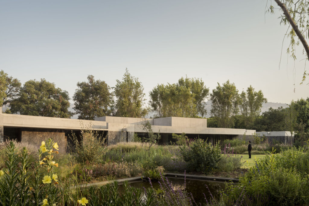 Speaking of flora, the landscape design for House Rinconada isn’t an afterthought; it’s a living, breathing extension of the natural field. Oioioi Studio has opted for wild plants and shallow bodies of water, a conscious decision to foster biodiversity and minimise water consumption. The added bonus? A dynamic, ever-changing tableau that mirrors the seasons, bringing a vibrant, organic rhythm to the property.