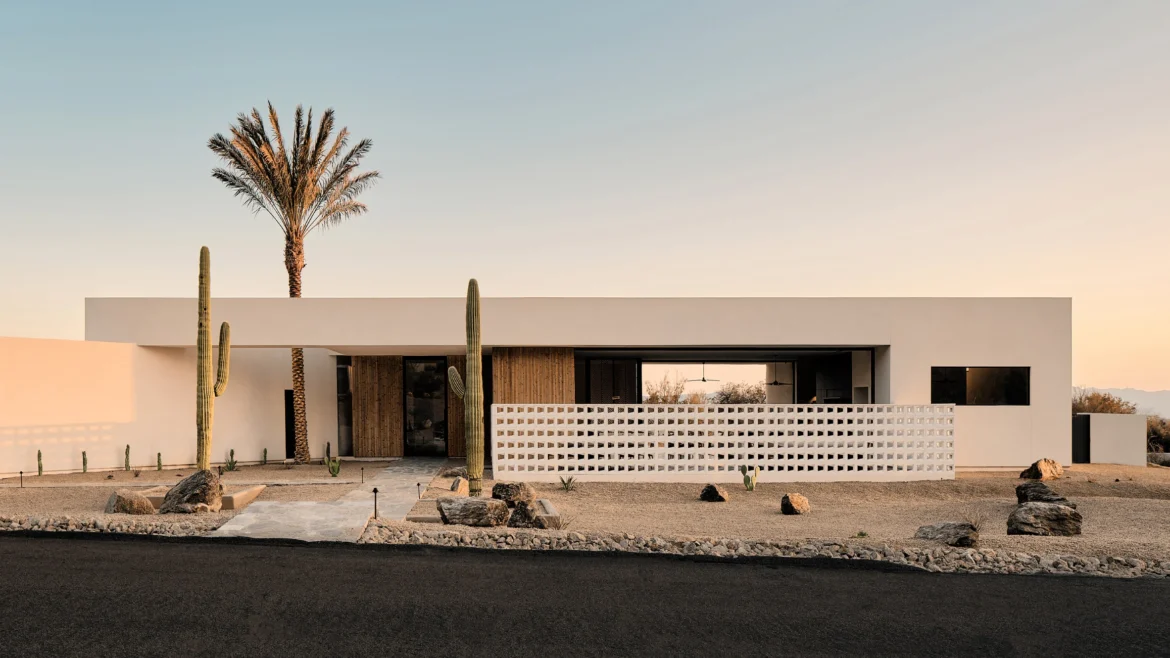 Phoenix, and its arid landscapes, serve as the perfect backdrop to some of our favourite pieces of architecture here at The Coolector and you can certainly add White Dates House from The Ranch Mine design studio to that list. Breeze-block walls and a roof cutout to house a palm tree are among the most eye-catching features at this majestic, Mid-Century modern Arizona house.