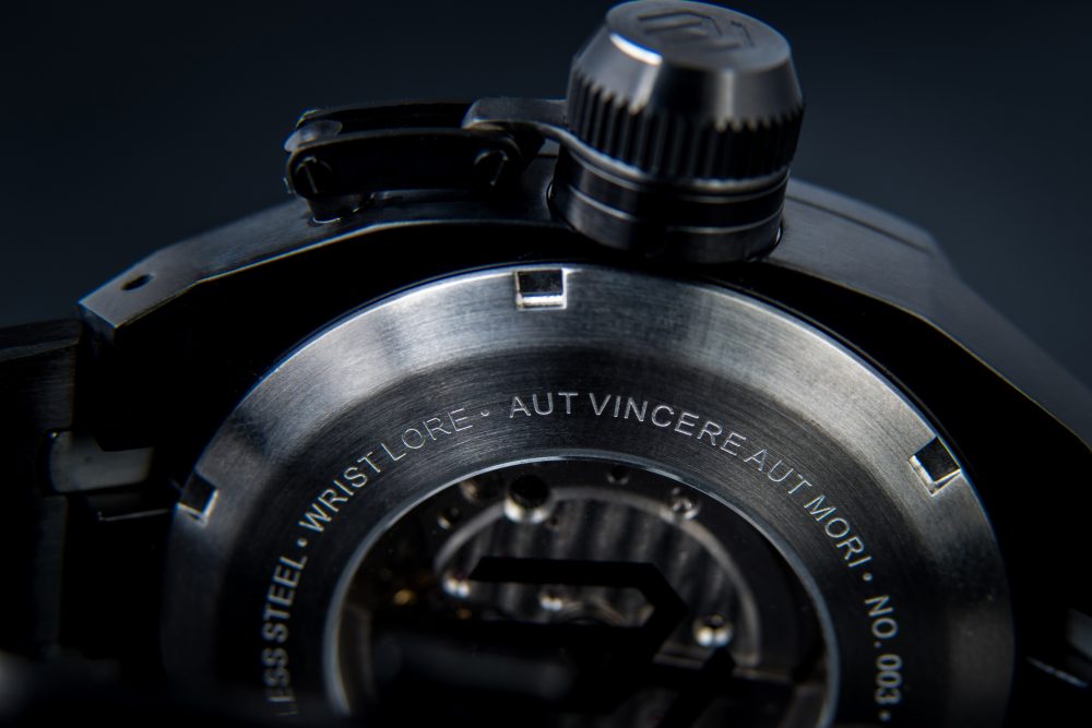 At 84,000+ feet in a moonless night sky the cockpit dials of the SR-71 would be illuminated in a celestial glow. Wrist Lore wanted to replicate this look  by using the most ubiquitous name in watch lume  –  Super-LumiNova™. The Swiss Super-LumiNova™ illuminates the hands during darkness and is our equivalent of the SR-71’s Astro-Inertial Navigation System, which could see stars during both day and night and makes this a stand out watch on the wrist. In honour of the year the Lockheed SR-71 Blackbird was built, only 1966 pieces of each Blackbird edition colourway will be crafted and each watch will be individually numbered to make it unique to you. The model also features an engraved caption on the caseback reading “AUT VINCERE AUT MORI” meaning “Conquer or Die” which is a fantastic finishing touch.