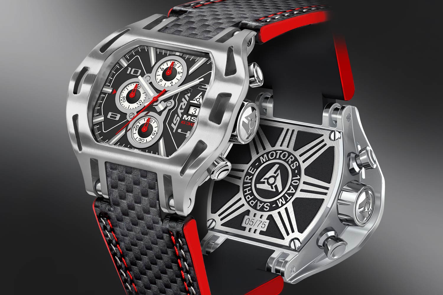 Each watch comes equipped with a precise timing chronograph to 1/10th of a second on the dial, and the back of the brushed steel watch case reveals black deep-etched details. There is real attention to detail in the design of these classy watches from Wryst and there can’t be many others out there which leave such an impression upon all who see it.