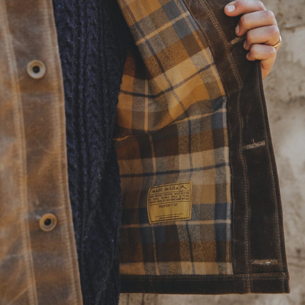 The main hand pockets are thoughtfully lined with the same soft flannel for an extra touch of comfort, and a discreet interior chest pocket keeps your valuables secure. The look is finished with beautifully aged antiqued brass button shanks and snaps on the collar and sleeves, adding a final touch of vintage-inspired authenticity. Proudly made in the USA and priced at $398, this is an investment in unparalleled craftsmanship that will pay dividends in style and utility for years to come. It’s more than just a jacket; it’s a testament to enduring quality and timeless design.